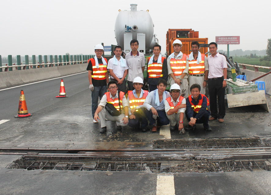 利用高压水射流技术进行伸缩缝拆除和修复是一种先进的技术,该技术在国外发达国家已经运用非常成熟普及。该技术的原理是高压水泵产生100-280Mpa的高压水射流,射入混凝土表面。混凝土为非匀质的多微孔结构,而钢筋为密实结构。高压水泵喷射出的水进入混凝土内部,水在混凝土内部形成超过混凝土抗拉强度的张力,破碎掉混凝土。但是,钢筋(包括拴在钢筋上的铁丝)是匀质材料,结构密实,没有缝隙,水无法进入钢筋或铁丝内部,所以高压水射流不会损害到钢筋等结构。